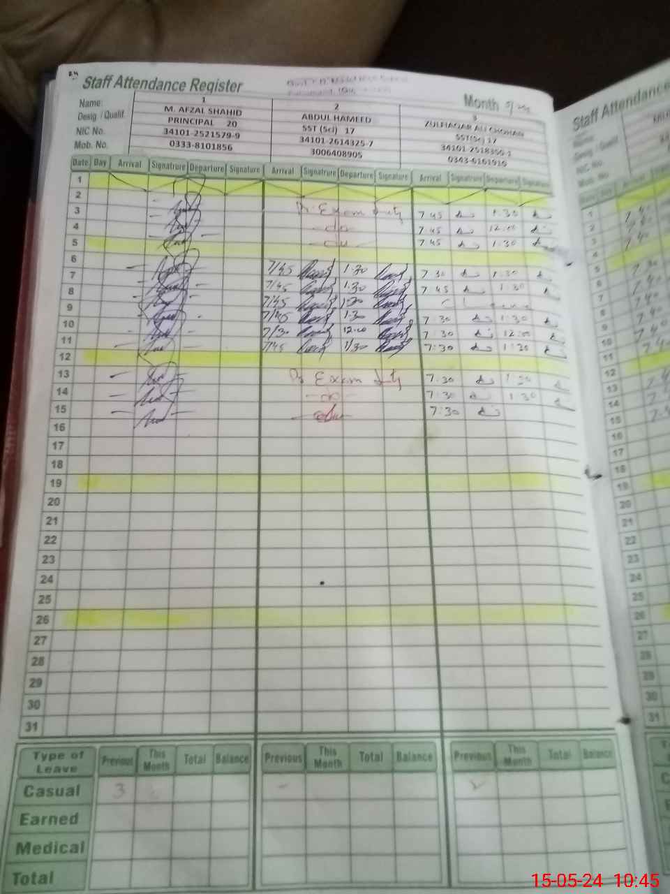 | 34**** | Fa**** Kh**** | SST | Regular | 0 | 0 | 0 | 0 | 0 | 0 | 0 | 0 | 0 | Exam Duty |