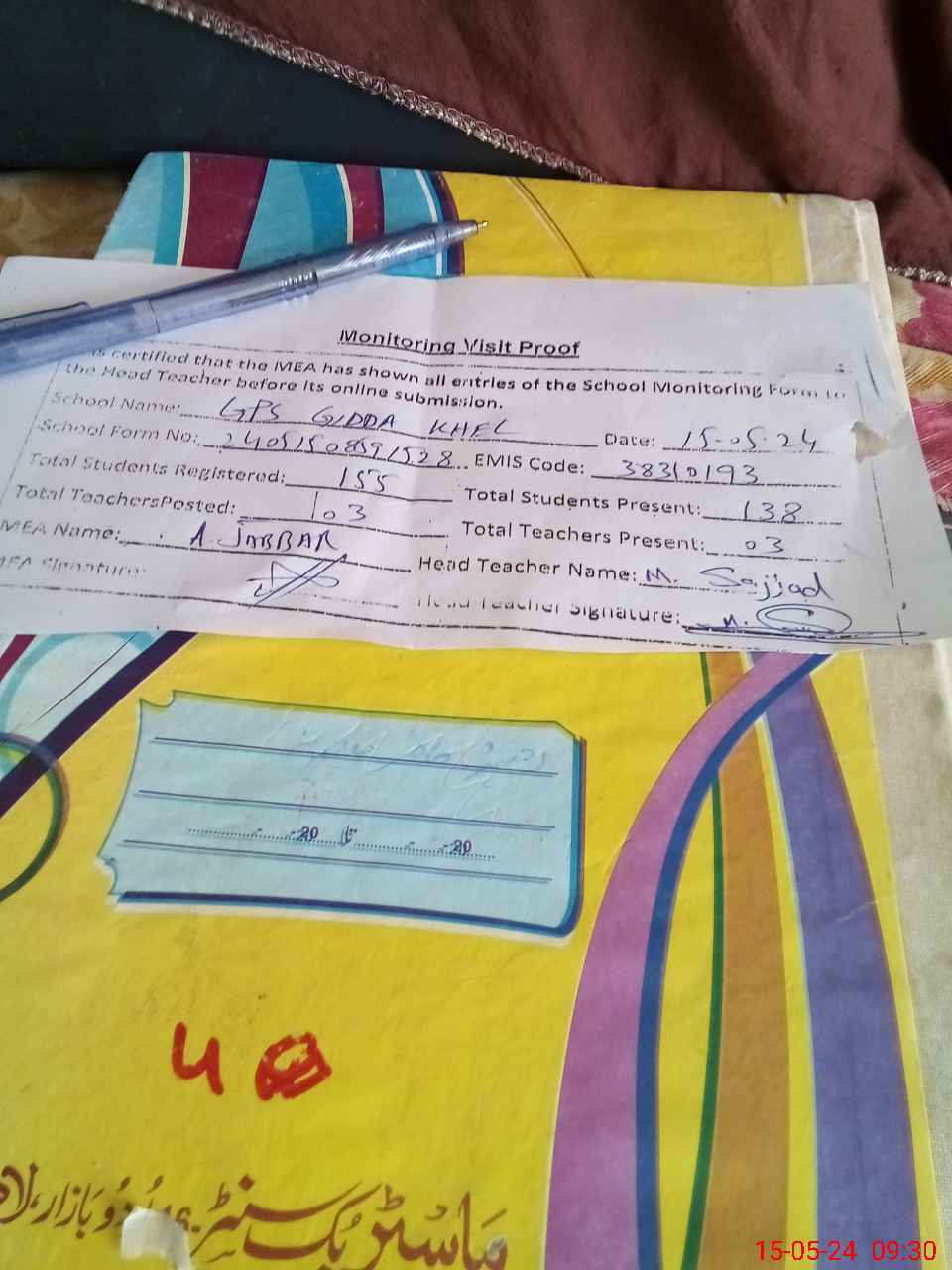 | EMIS Code: 38310193 | Name of School: GPS GIDDA KHEL | |||