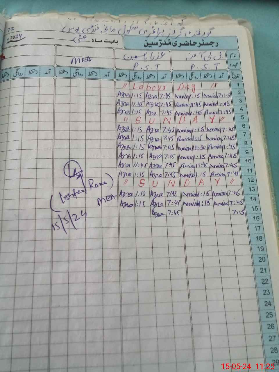 | CNIC | Full Name | Designation | R/C | Absence During Last Calender Month |
