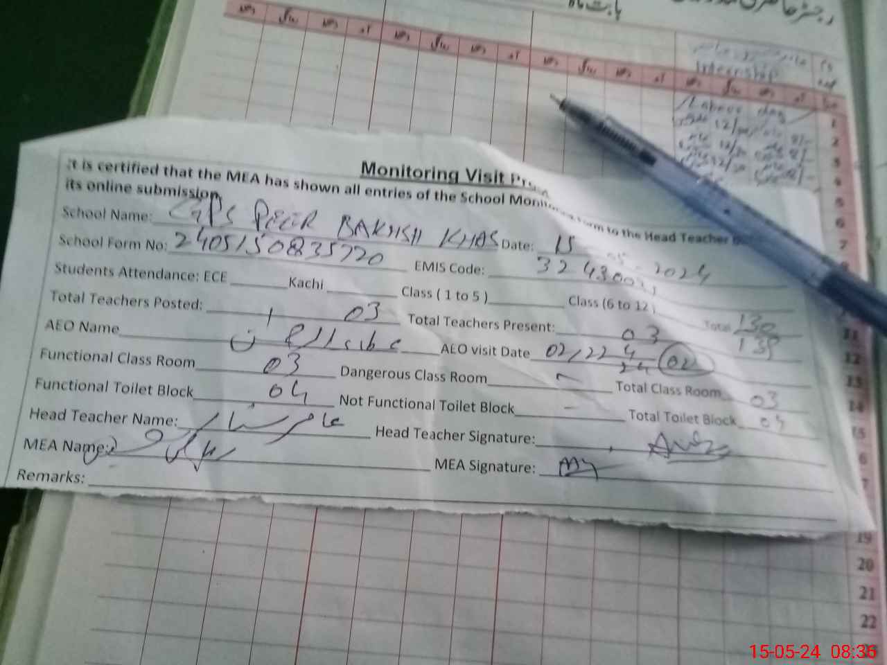 | EMIS Code: 32430091 | Name of School: GPS PIR BAKHSH KHAS | |||