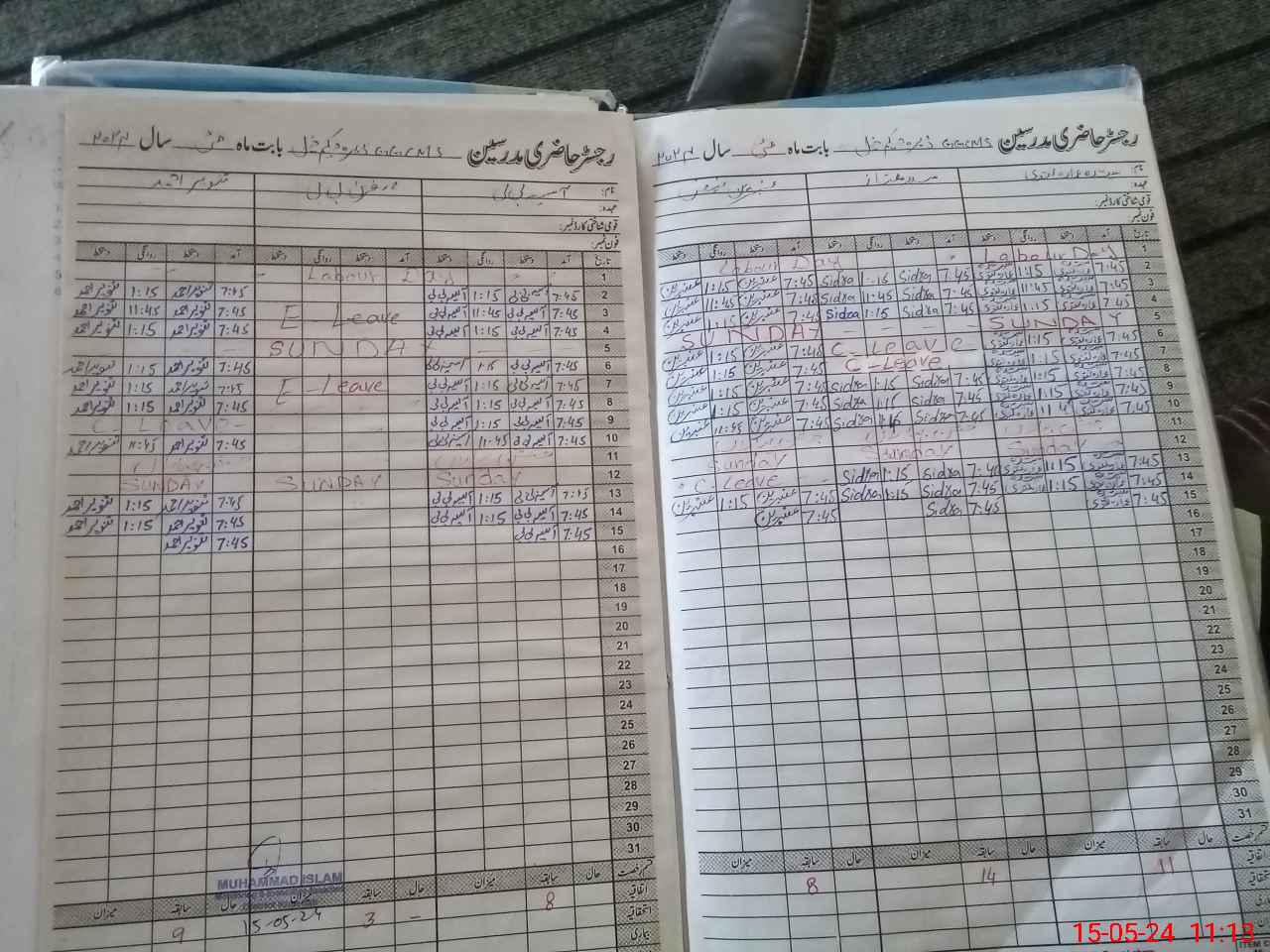 | CNIC | Full Name | Designation | R/C | Absence During Last Calender Month |