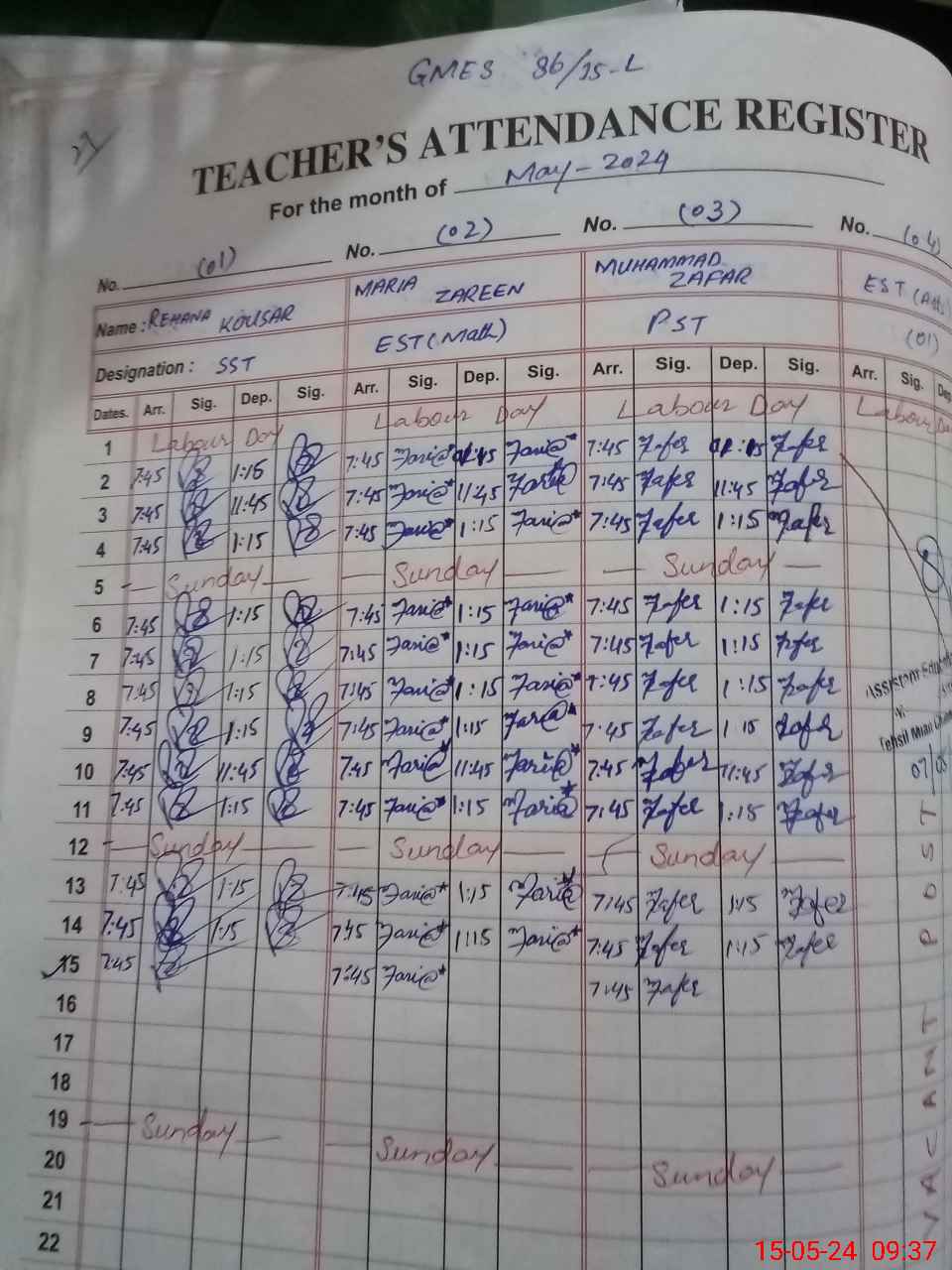 | Name: MA**** ZA**** Designation: (School Headmaster's/Headmistress's) EST MATH Phone/Cell Number: 03**** |