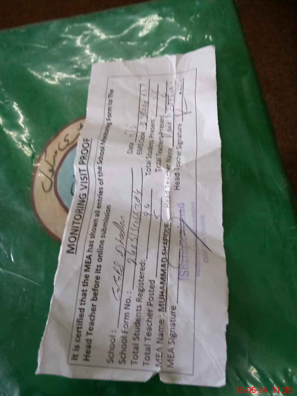 | Attendance Register | Head Teacher | MEA with School | Visit Proof |