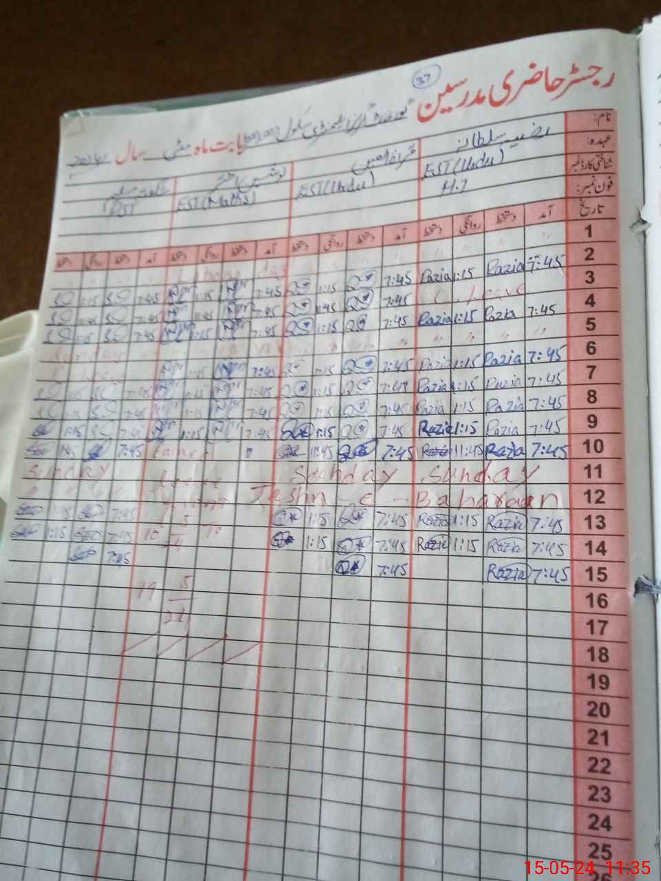 | CNIC | Full Name | Designation | R/C | Absence During Last Calender Month |
