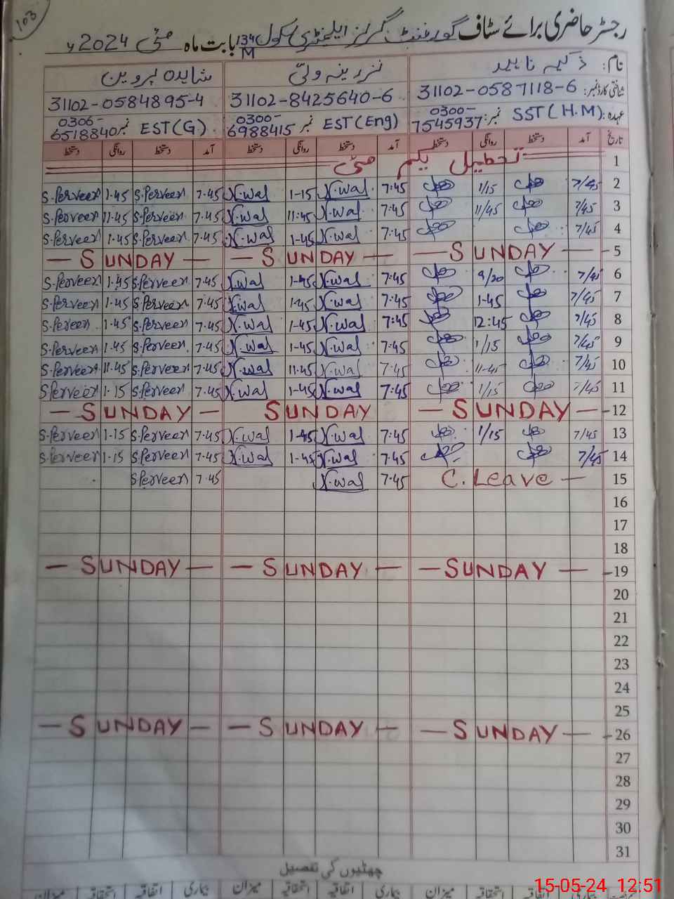 | Remarks (Use Separate Page if Required): Head teacher leave applied but not approved yet Nsb register not updated | |||||