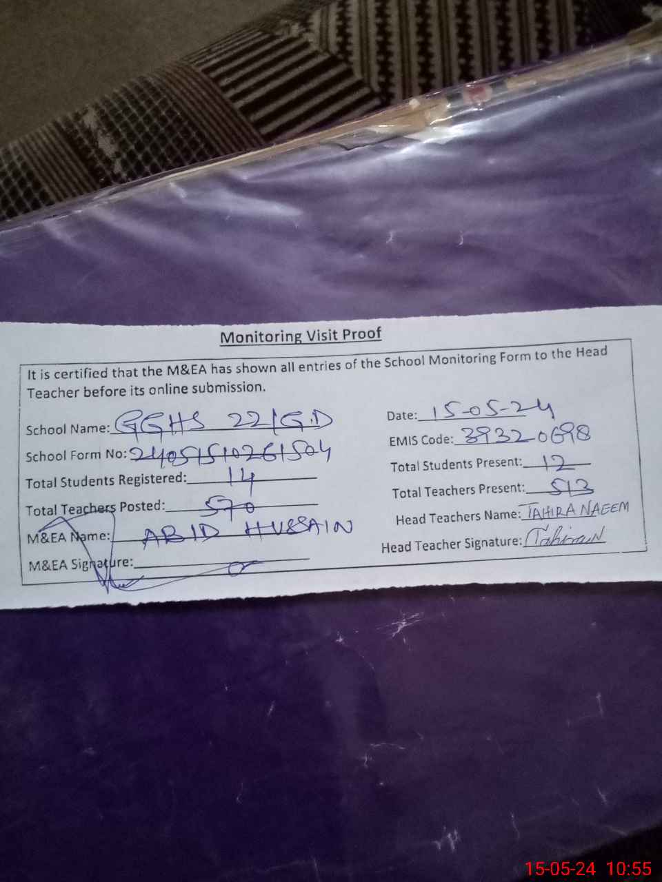 | EMIS Code: 39320698 | Name of School: GGHS 22/G.D | |||