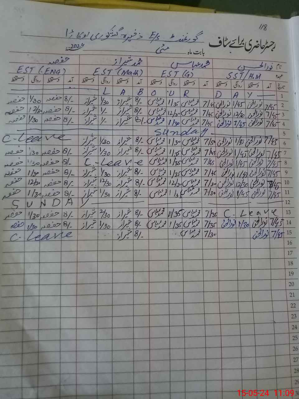 | CNIC | Full Name | Designation | R/C | Absence During Last Calender Month |