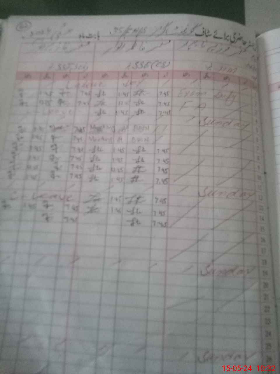 | 31**** | Fo**** Na**** | SST | Regular | 0 | 0 | 0 | 0 | 0 | 0 | 0 | 0 | 0 | Exam Duty |