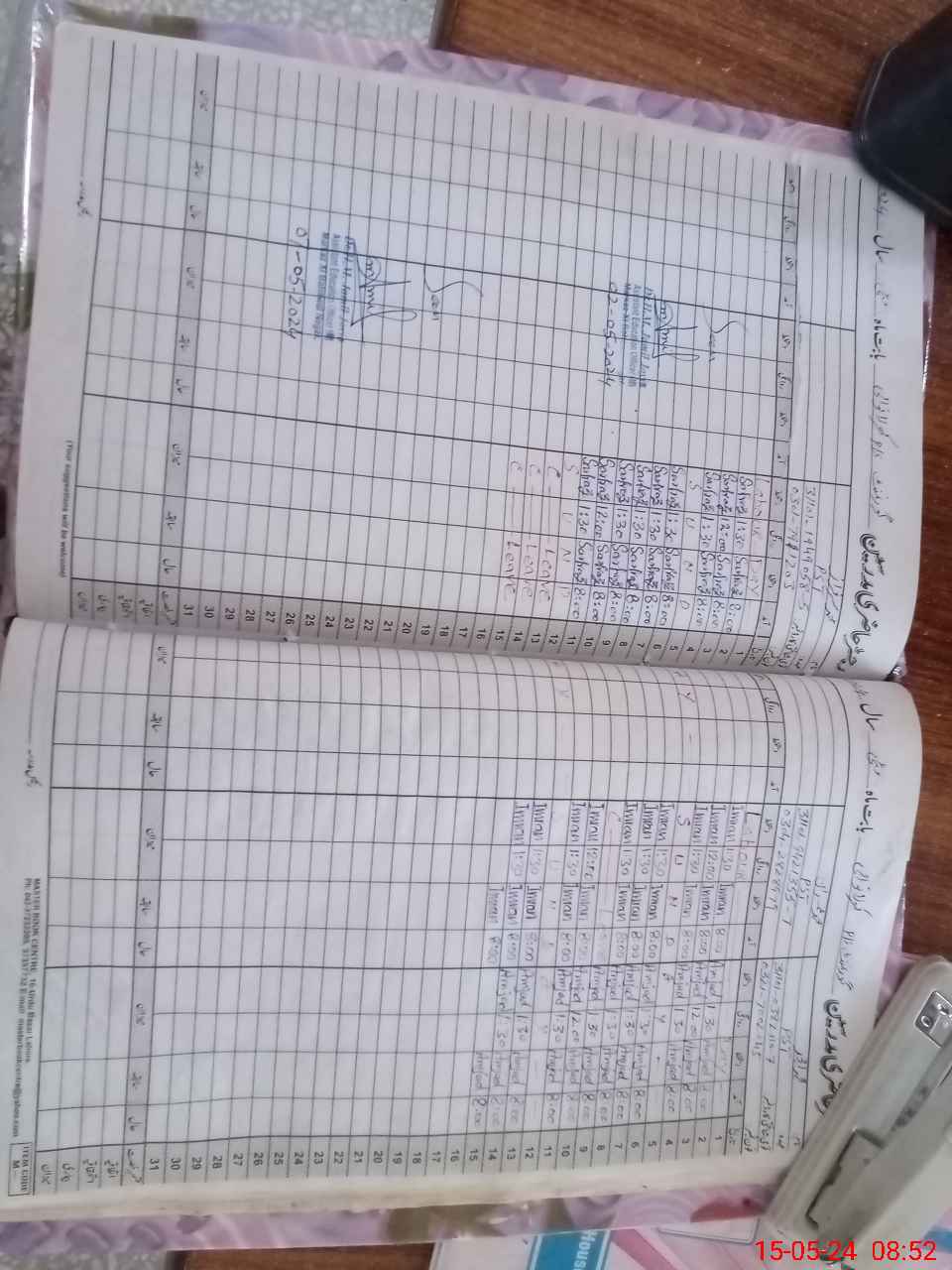 | CNIC | Full Name | Designation | R/C | Absence During Last Calender Month |