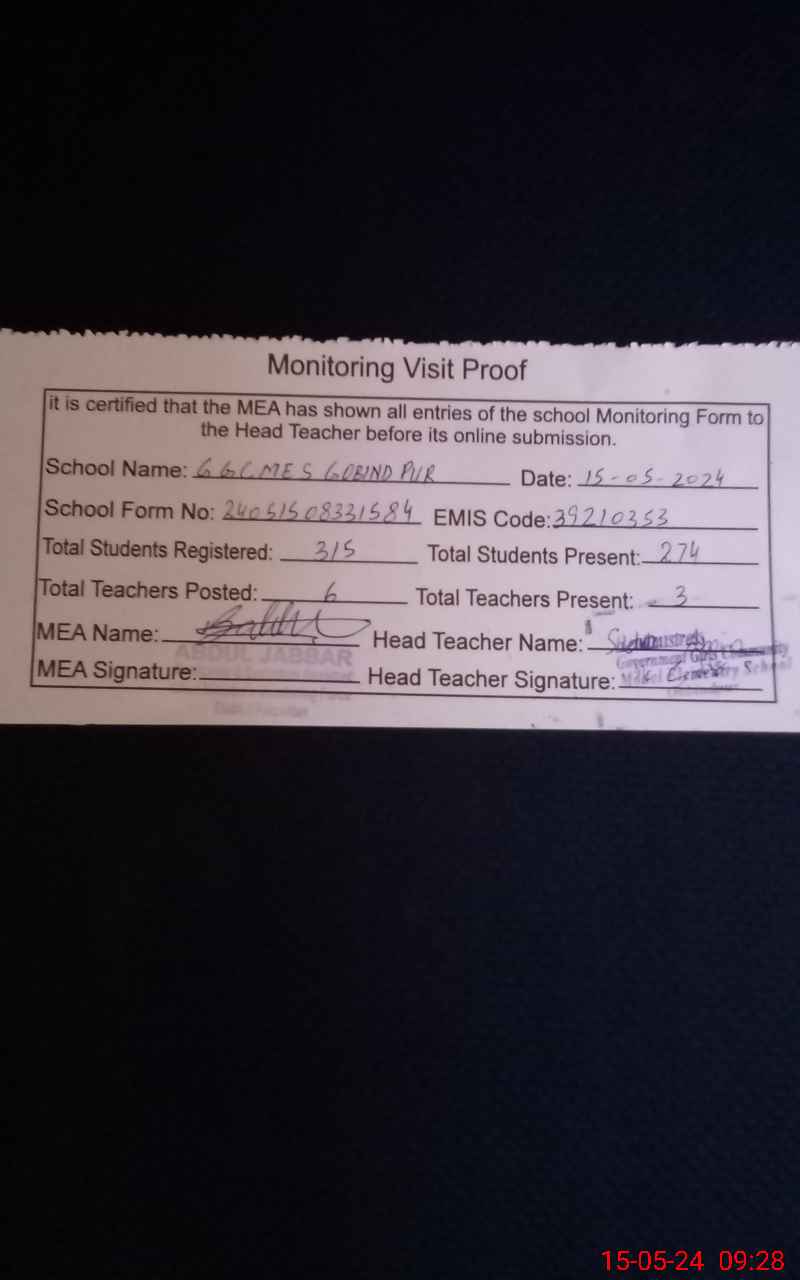 | EMIS Code: 39210353 | Name of School: GGCMES GOBIND PUR | |||