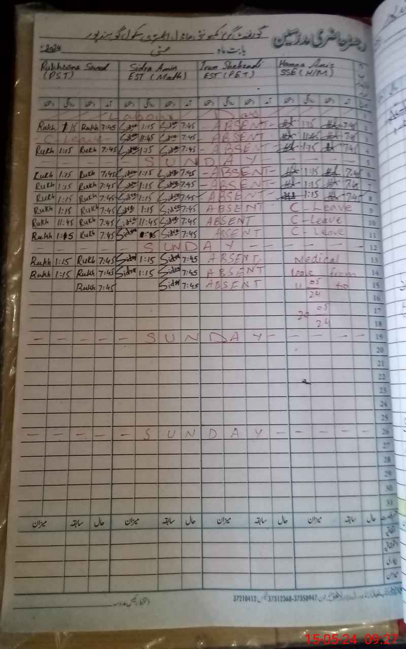 | CNIC | Full Name | Designation | R/C | Absence During Last Calender Month |