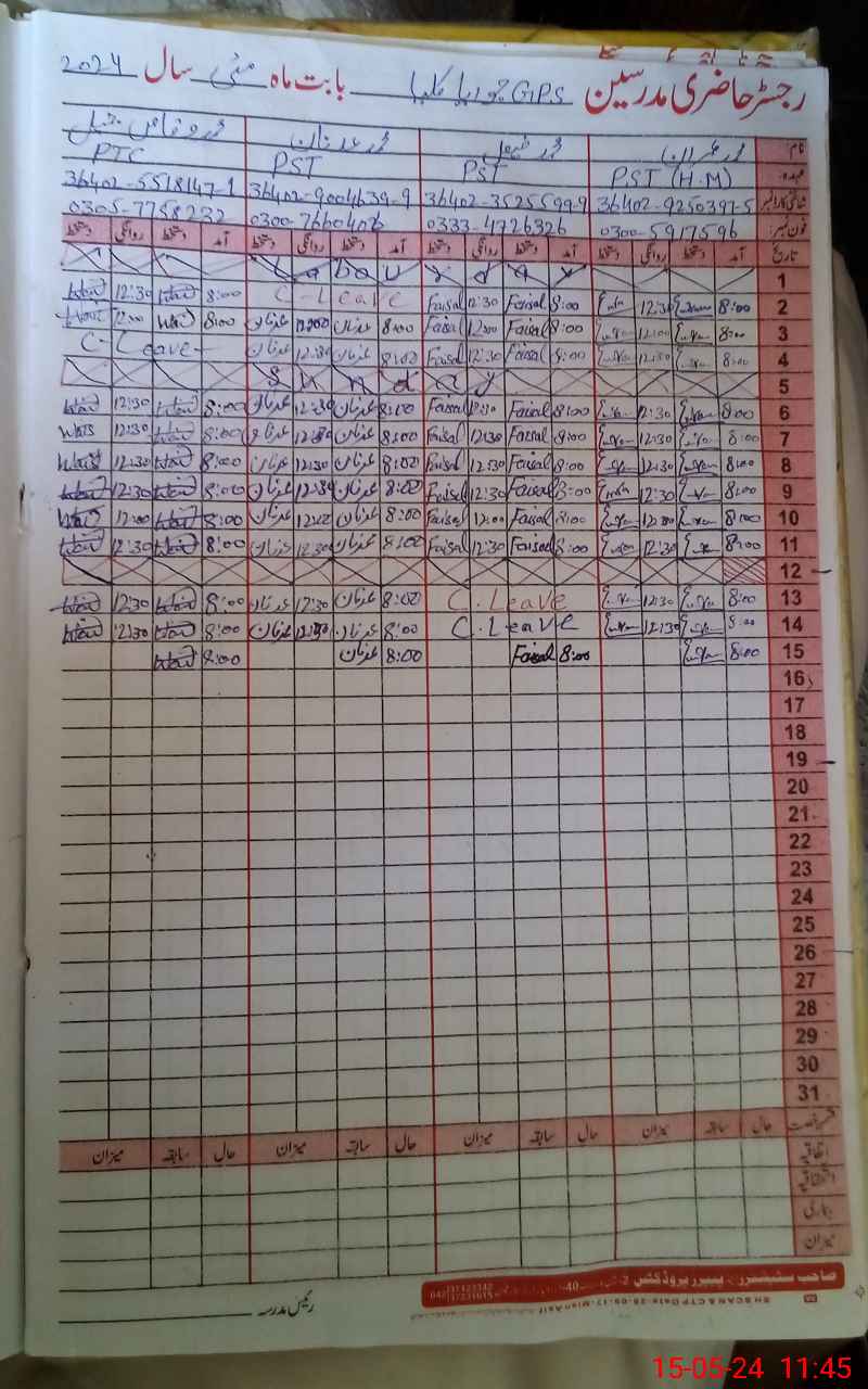 | Name: MU**** Fa**** Designation: (School Headmaster's/Headmistress's) PST Phone/Cell Number: 03**** |