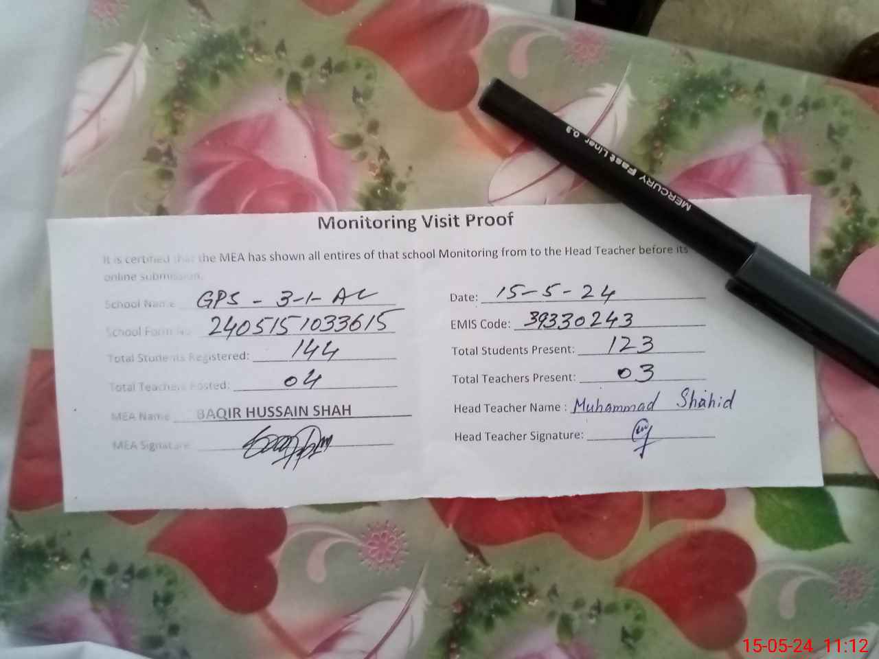 | EMIS Code: 39330243 | Name of School: GPS CHAK 3/1-AL | |||