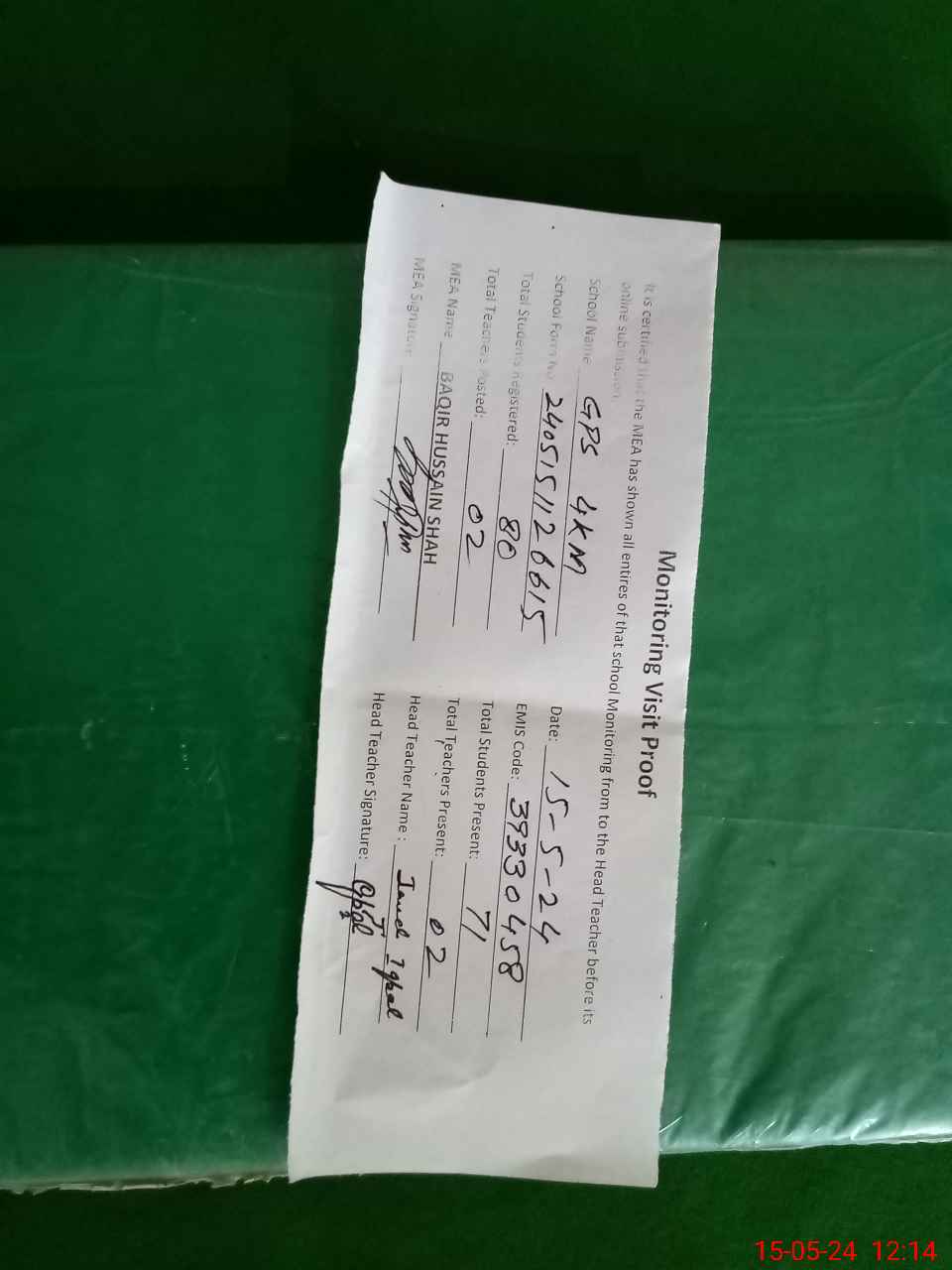 | EMIS Code: 39330458 | Name of School: GPS CHAK NO. 4 KM | |||