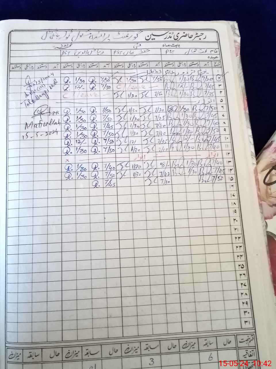 | CNIC | Full Name | Designation | R/C | Absence During Last Calender Month |
