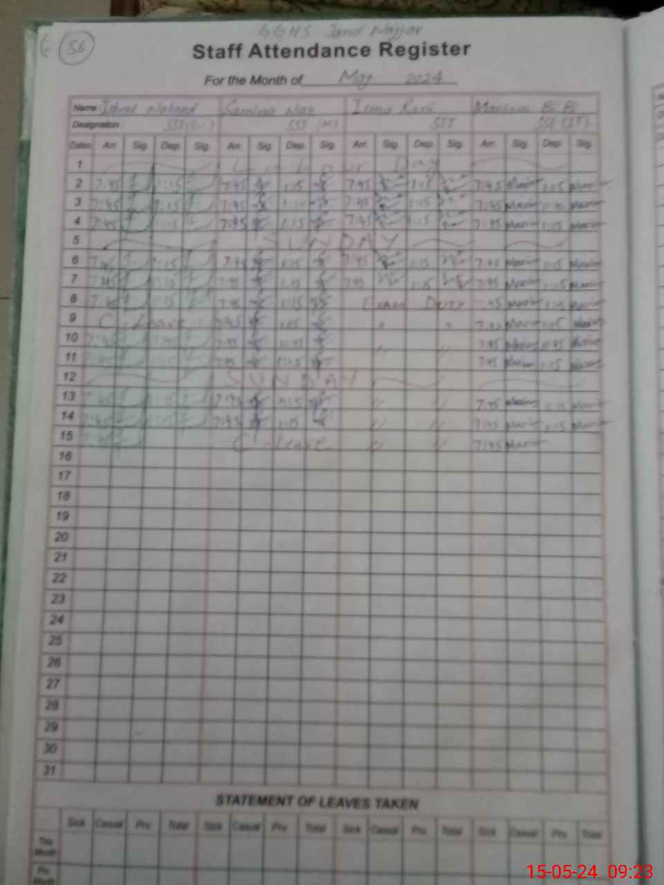 | 37**** | Is**** Ra**** | SST | Regular | 0 | 0 | 0 | 0 | 0 | 0 | 0 | 0 | 0 | Exam Duty |