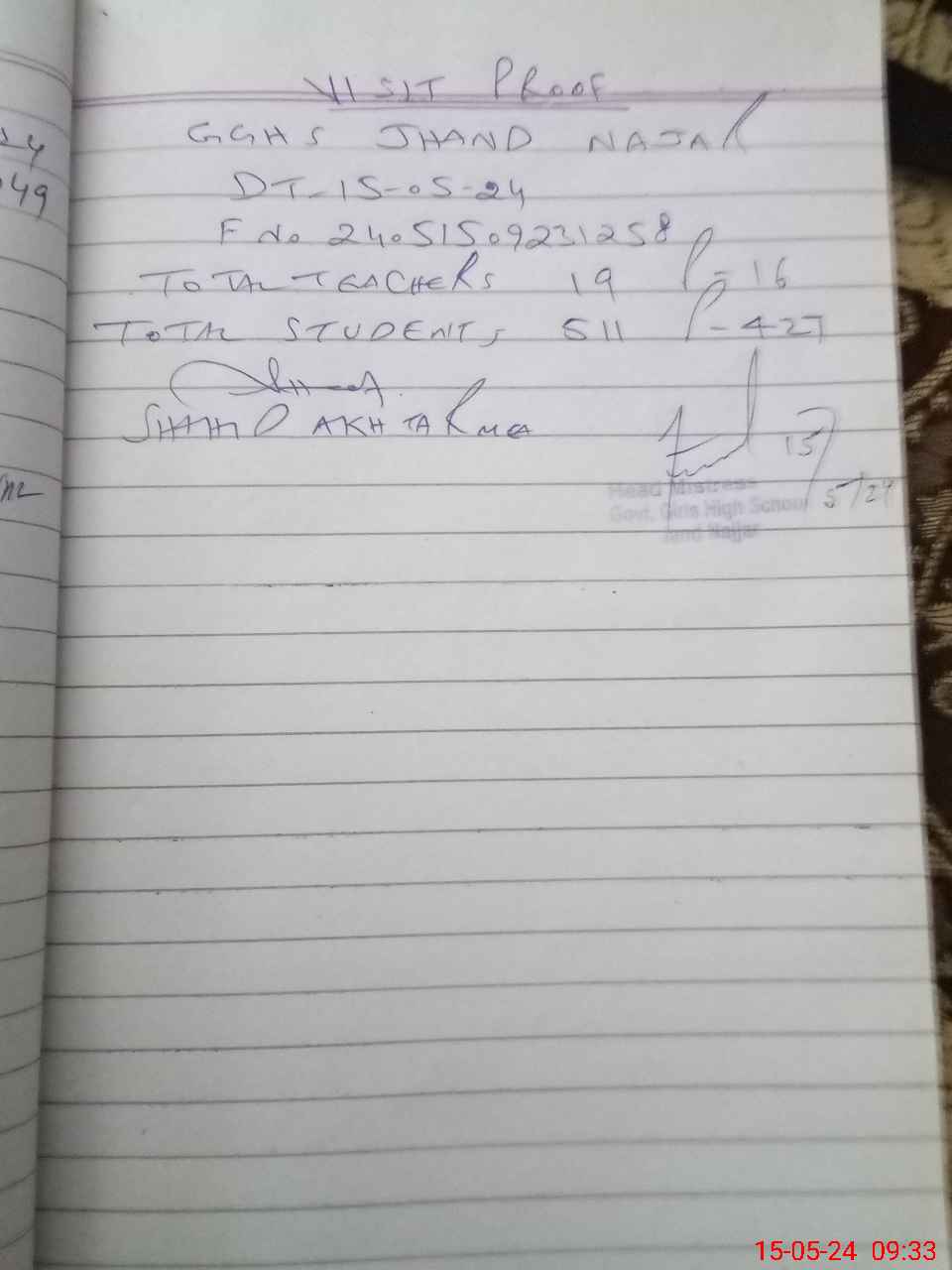 | Name: Is**** Na**** Designation: (School Headmaster's/Headmistress's) SST( SCI) Phone/Cell Number: 03**** |