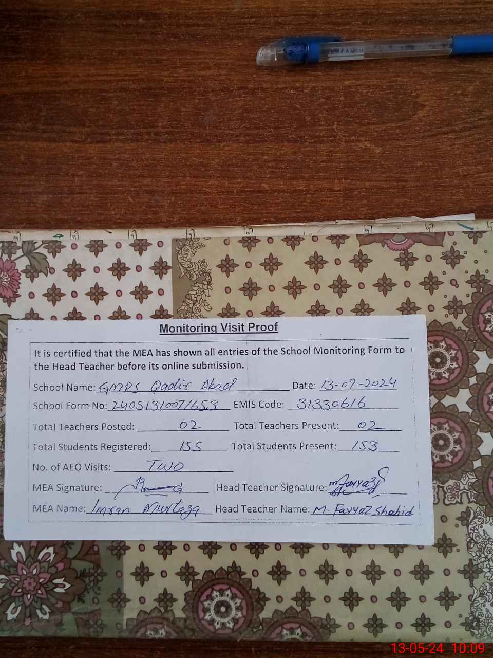 | EMIS Code: 31330616 | Name of School: GMPS QADIR ABAD BASTI | |||