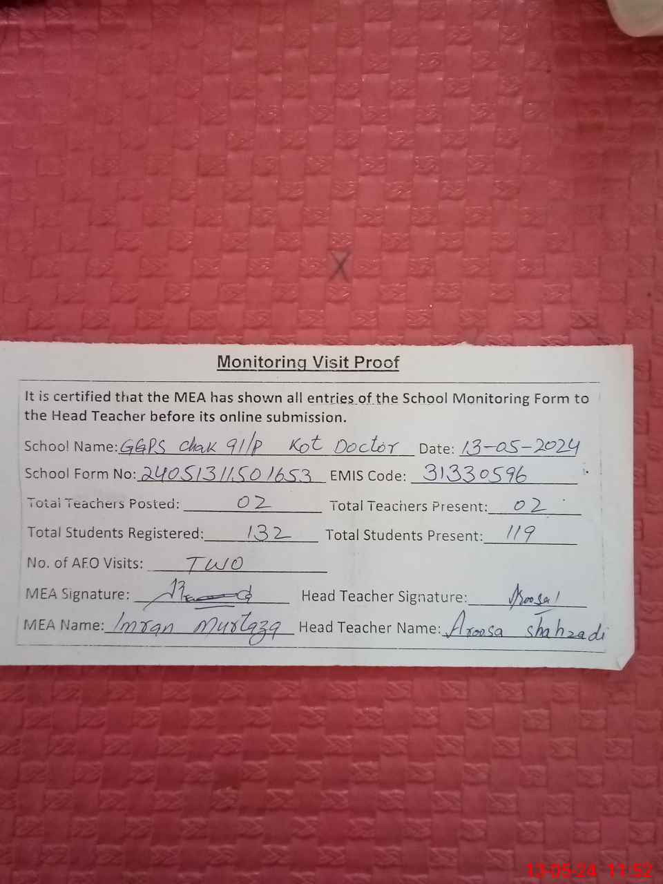 | EMIS Code: 31330596 | Name of School: GGPS CHAK NO. 91/P (Kot Doctor JDW Road) | |||