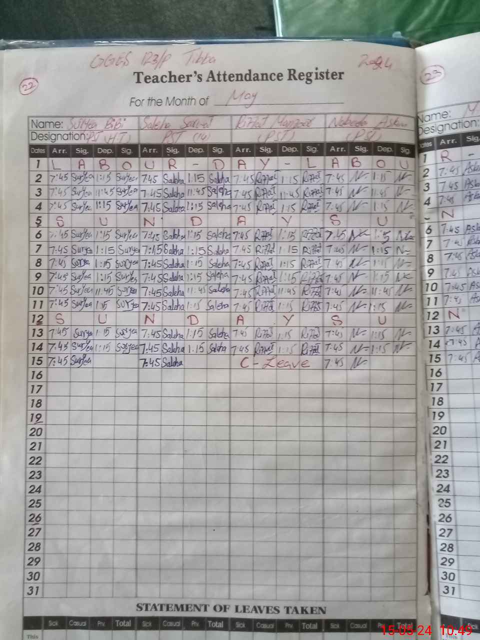 | Leave | Duty | Absent | Maternity | Medical | Ex- Pak |