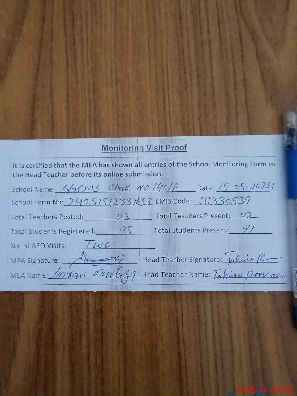 | EMIS Code: 31330539 | Name of School: GGCMS CHAK NO.140/P | |||