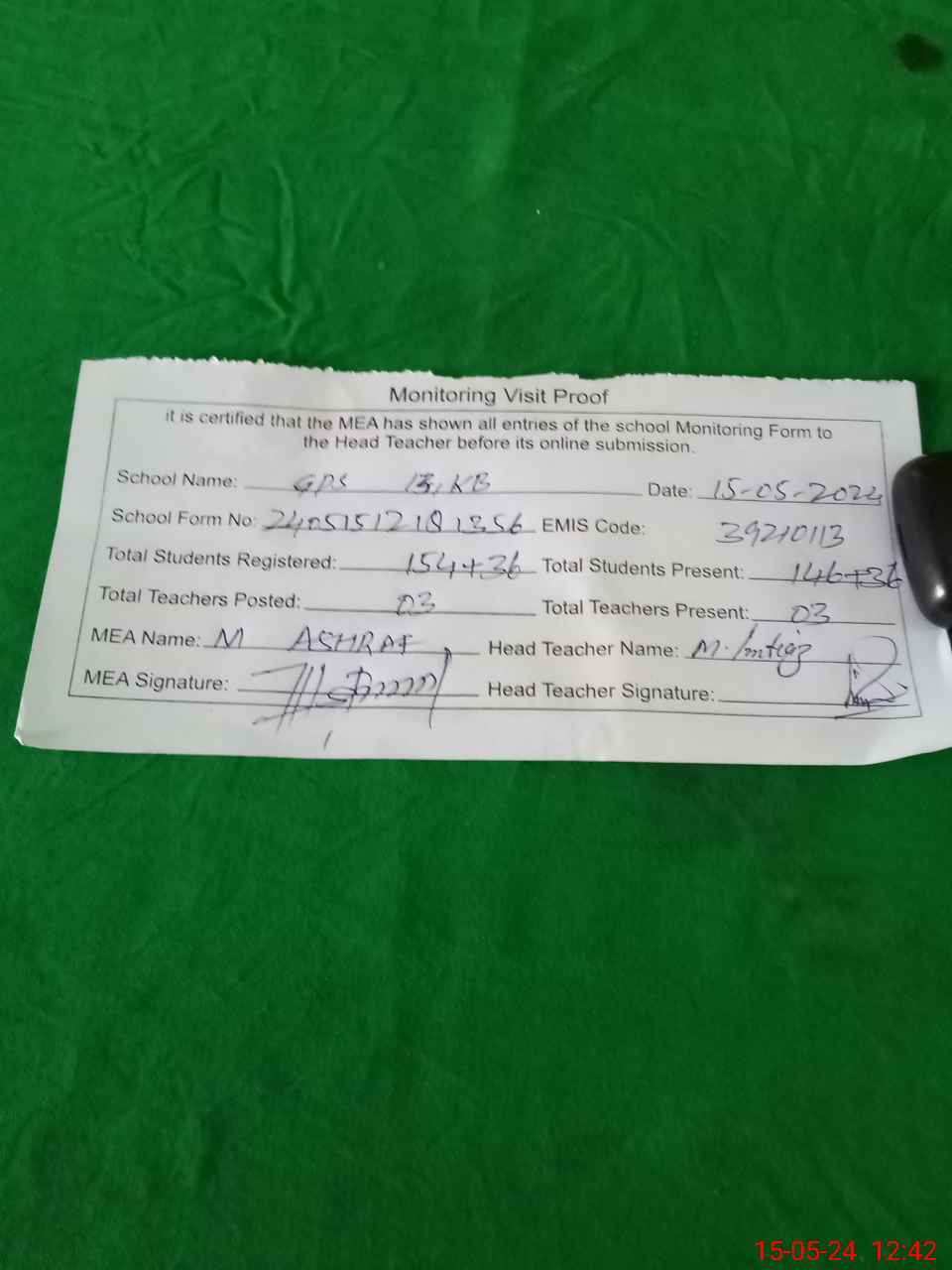 | EMIS Code: 39210113 | Name of School: GPS 13 KB | |||