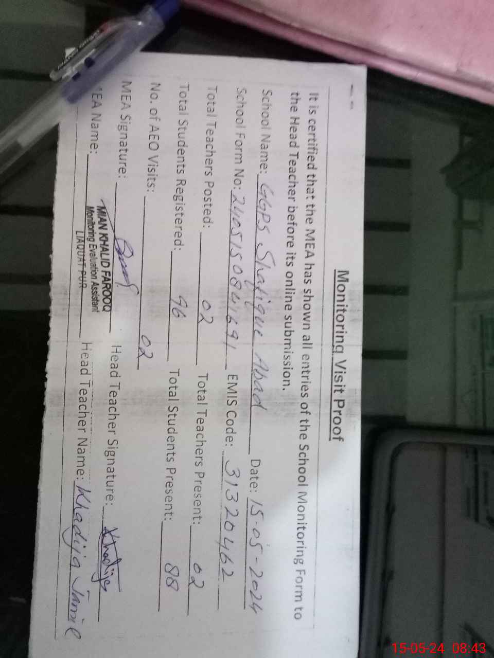 | EMIS Code: 31320462 | Name of School: GGPS SHAFIQ ABAD | |||