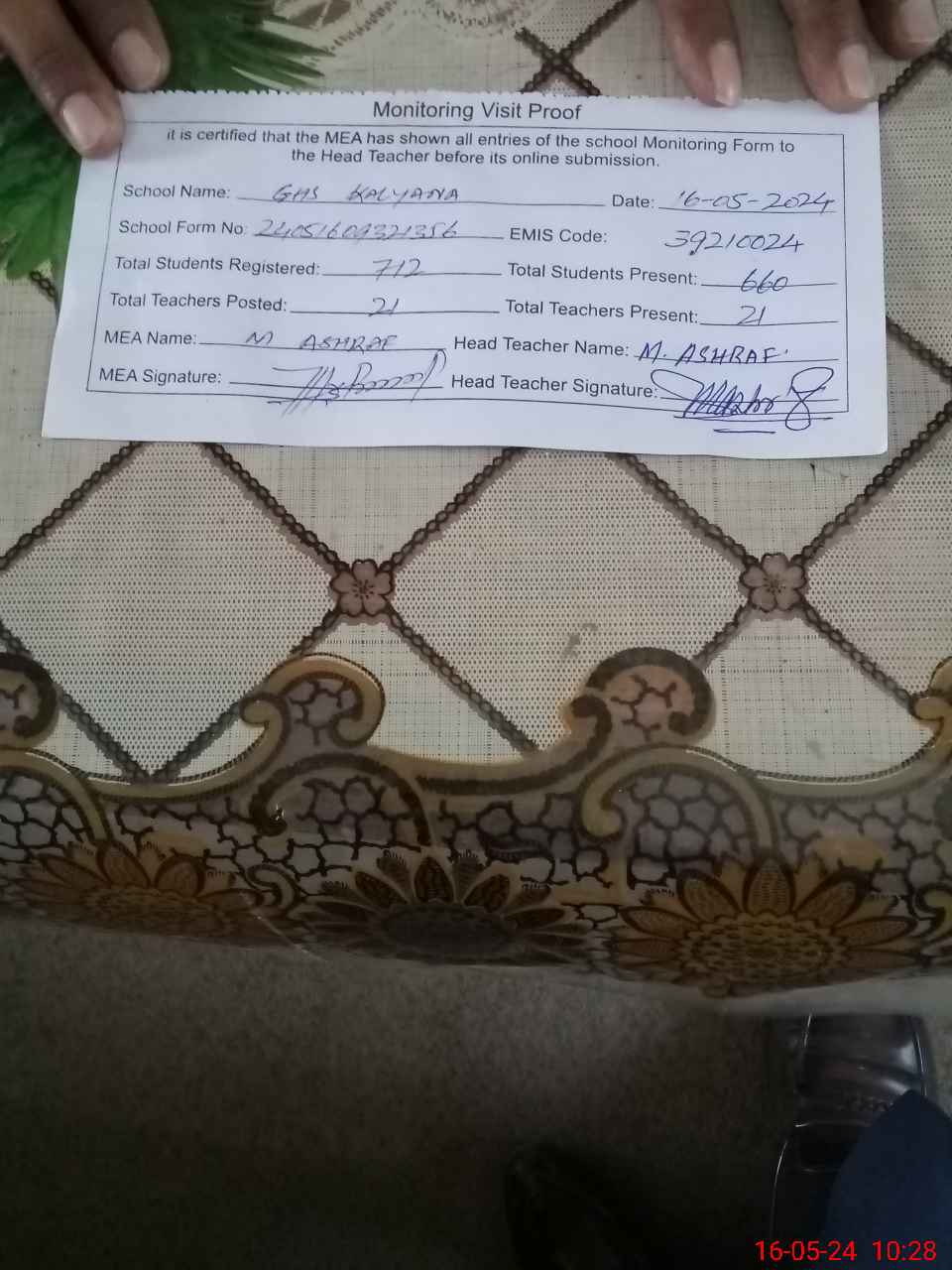 | EMIS Code: 39210024 | Name of School: GHS KALYANA P.O SAME | |||