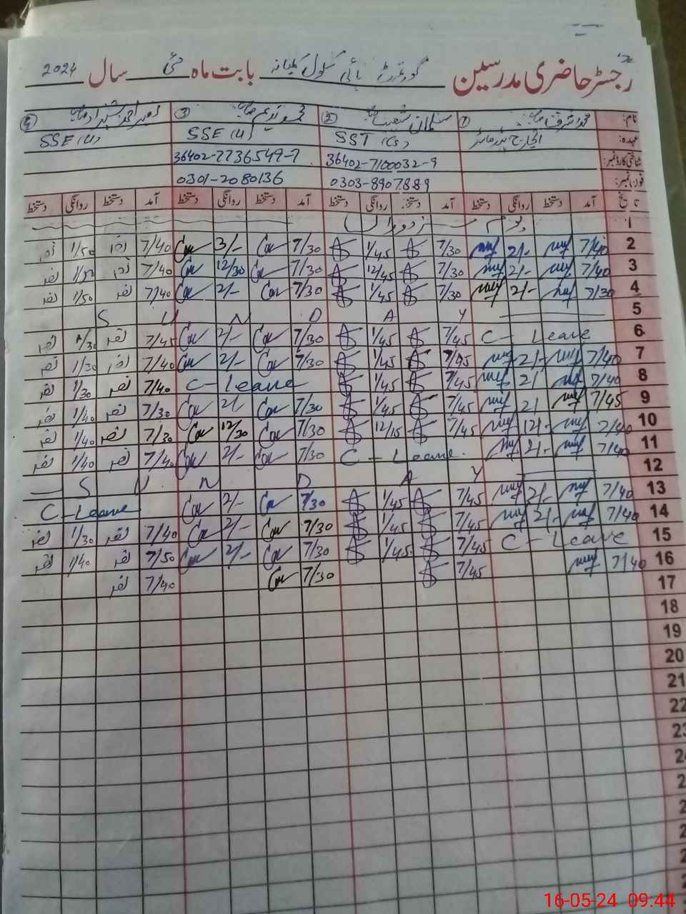 | CNIC | Full Name | Designation | R/C | Absence During Last Calender Month |