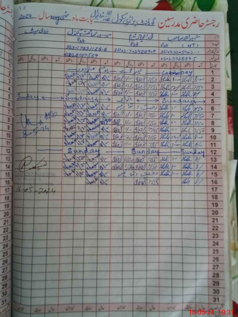 | Name: Sh**** Ka**** Designation: (School Headmaster's/Headmistress's) PST Phone/Cell Number: 03**** |