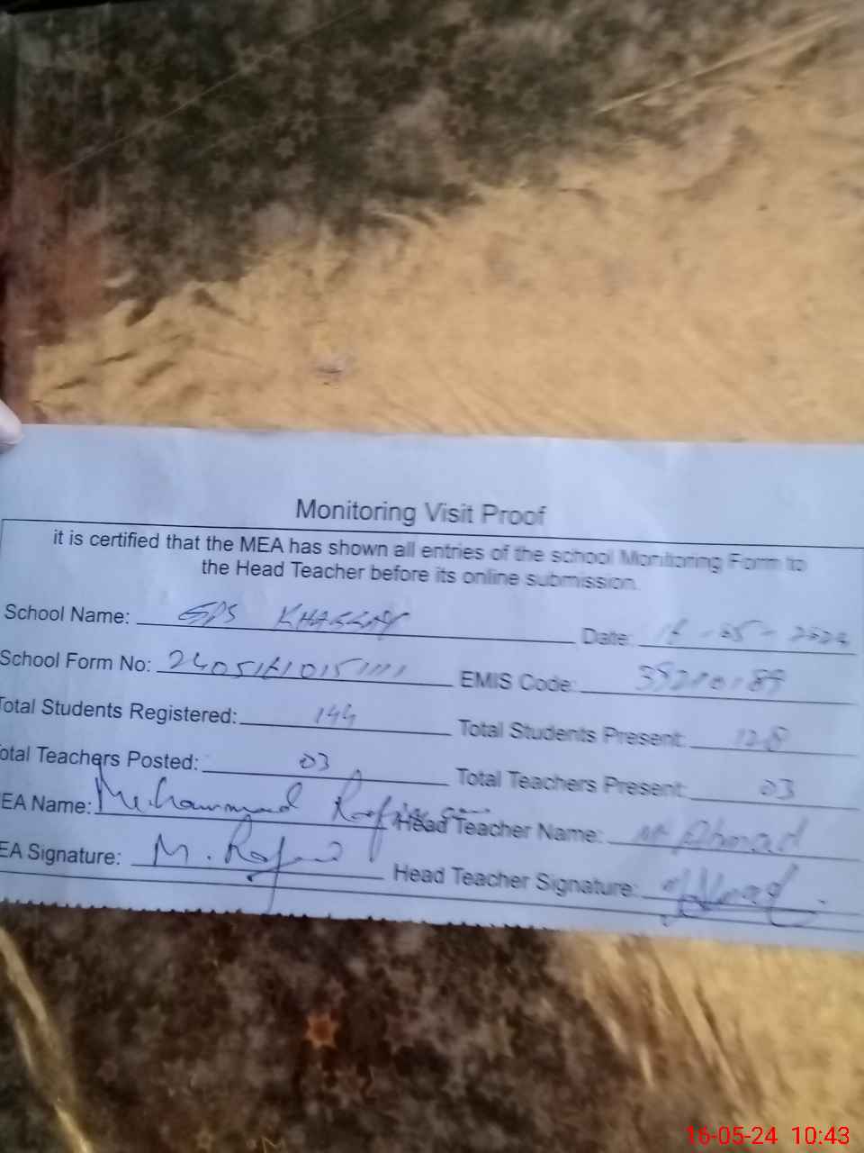 | EMIS Code: 39210189 | Name of School: GPS KHAGGAY PO PAKPATTAN | |||