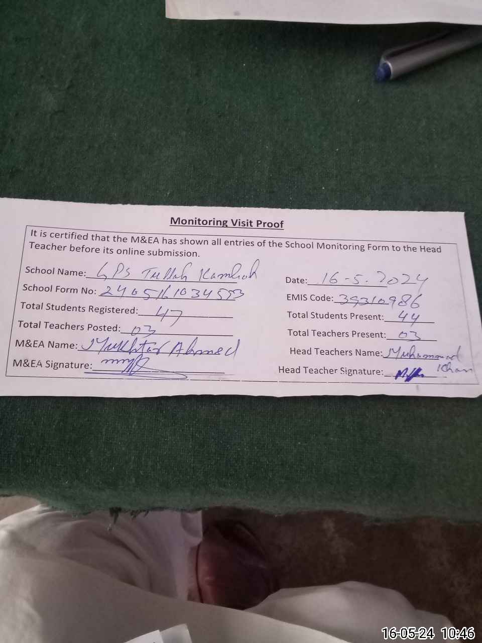 | EMIS Code: 39310986 | Name of School: GPS TULLAH KAMBOH | |||