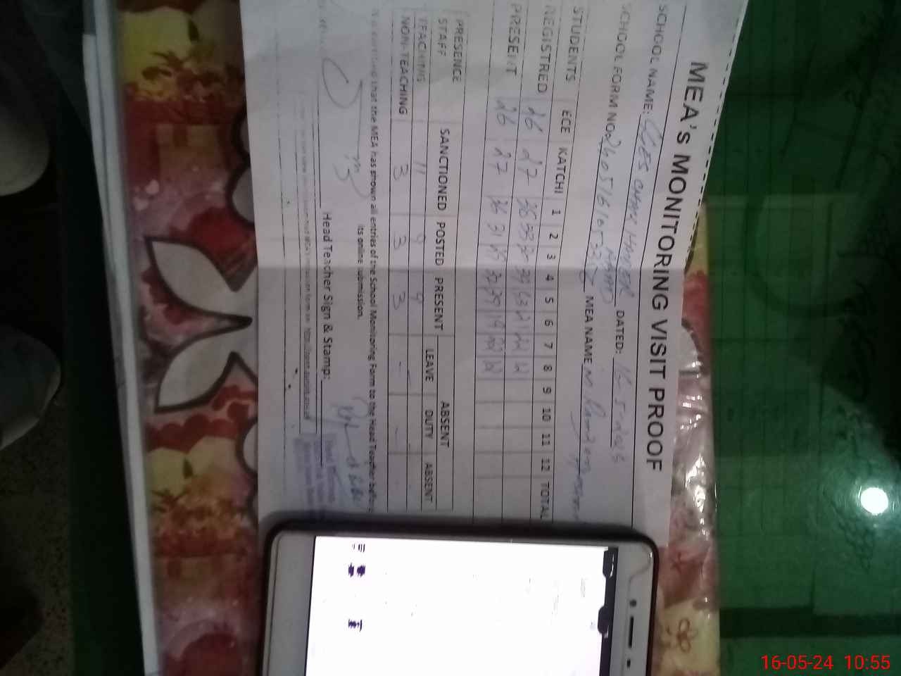 | Attendance Register | Head Teacher | MEA with School | Visit Proof |
