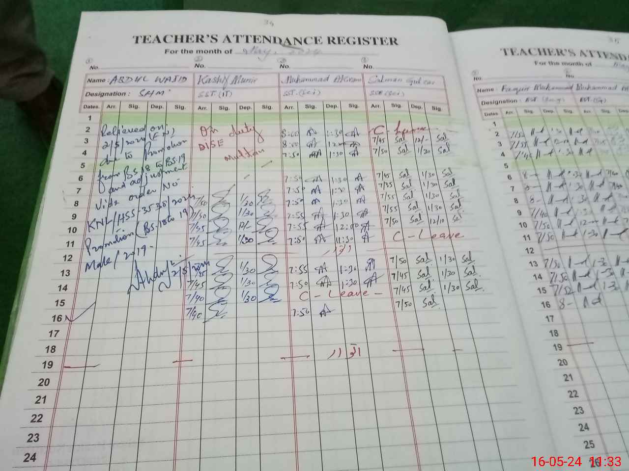 | 36**** | Ay**** Ah**** | Regular | 0 | 30 | 0 | 0 | 0 | 0 | 0 | 0 | 0 | Exam Duty | |