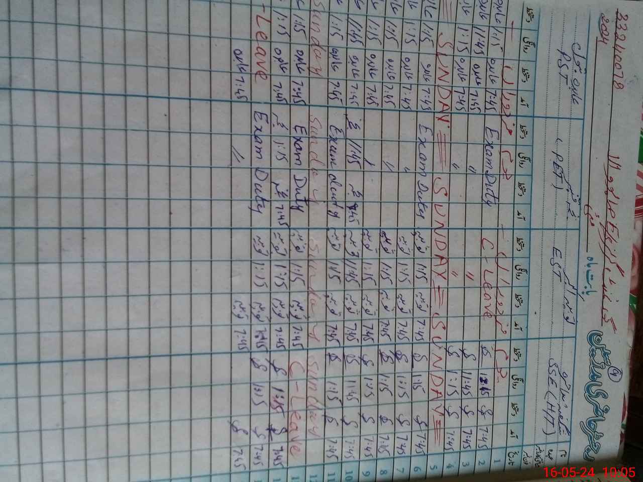 | 33**** | Na**** Qu**** | EST | Regular | 0 | 0 | 0 | 0 | 0 | 0 | 0 | 0 | 0 | Exam Duty |