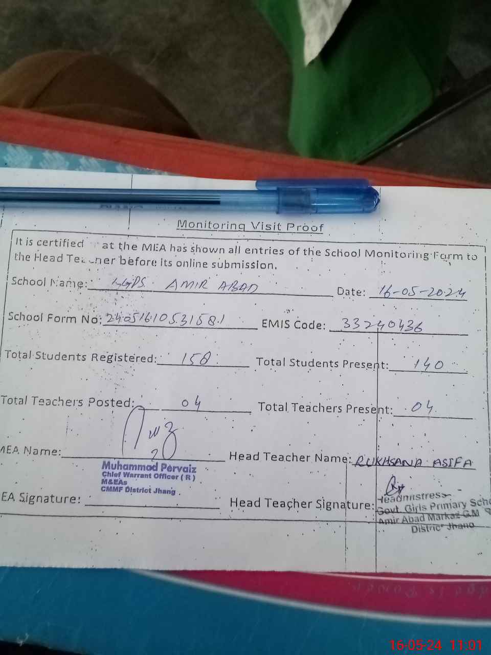 | EMIS Code: 33240436 | Name of School: GGPS AMIR ABAD | |||
