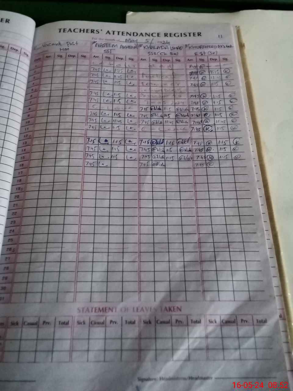 | Name: Kh**** Is**** Designation: (School Headmaster's/Headmistress's) SSE (Bio Chem) Phone/Cell Number: 03**** |