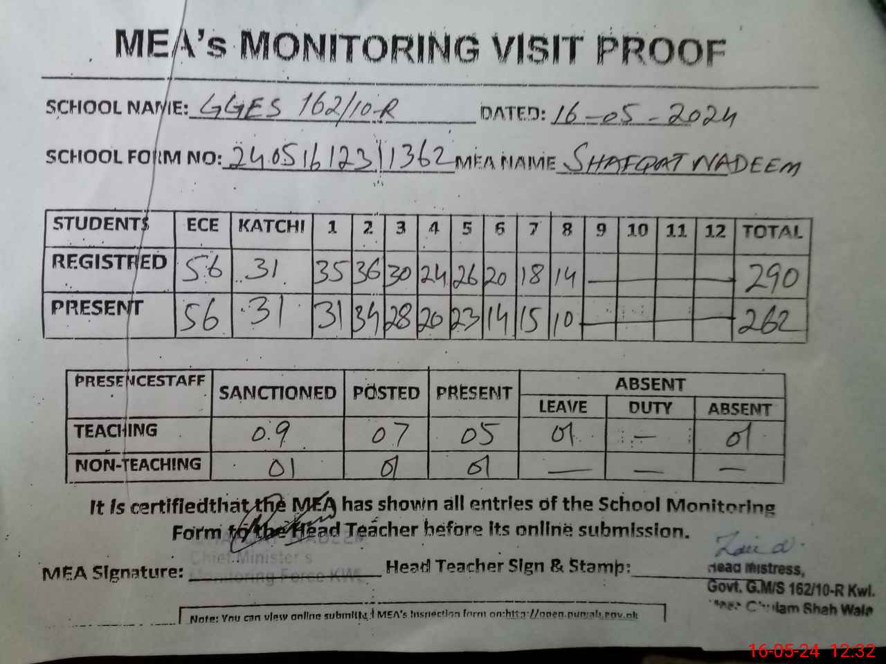 | EMIS Code: 36420434 | Name of School: GGES 162/10-R, KHANEWAL | |||