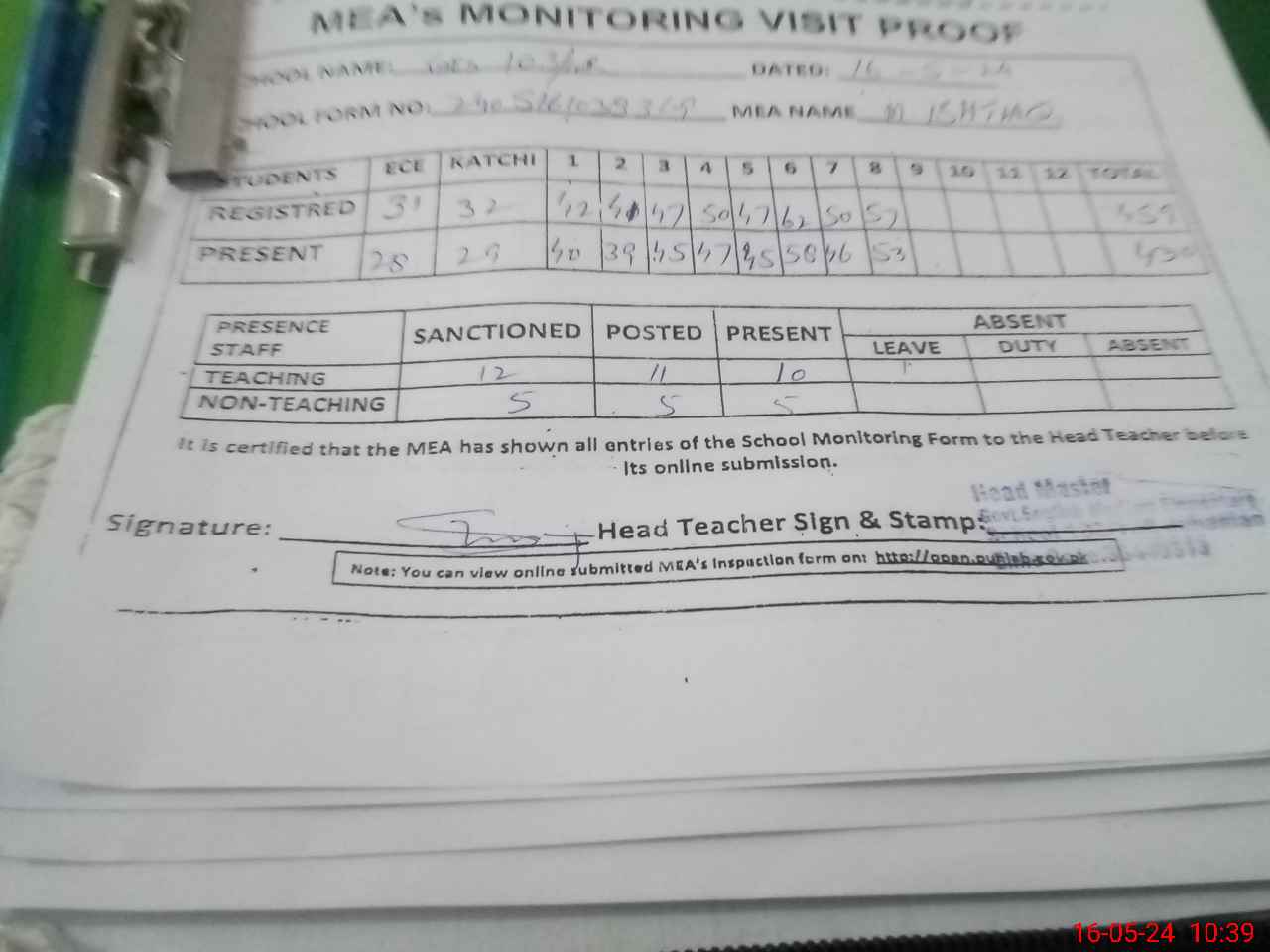 | Certified that this School was Inspected by the Undersigned MEA/DMO Today and the Information Stated Above is as Per Record. | |||||