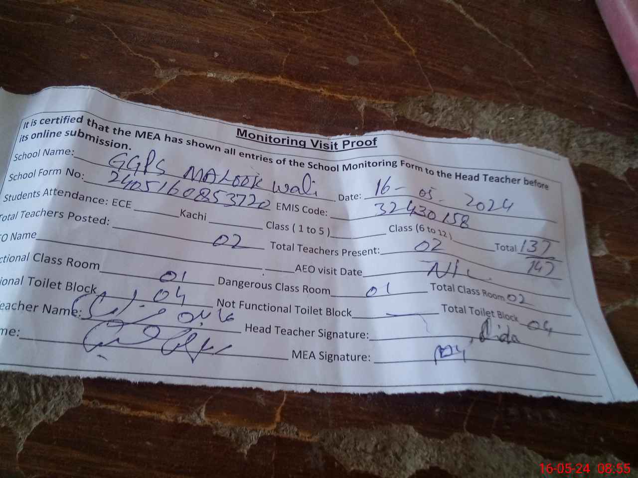 | EMIS Code: 32430158 | Name of School: GGPS MALOOK WALI | |||