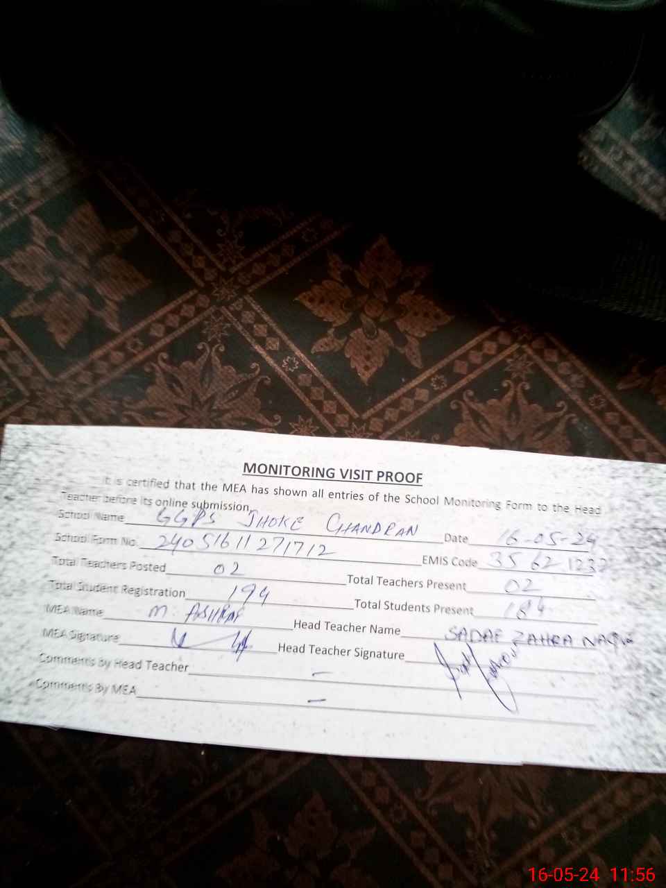 | EMIS Code: 35621232 | Name of School: GGPS MODEL JHOKE CHANDHRAN | |||