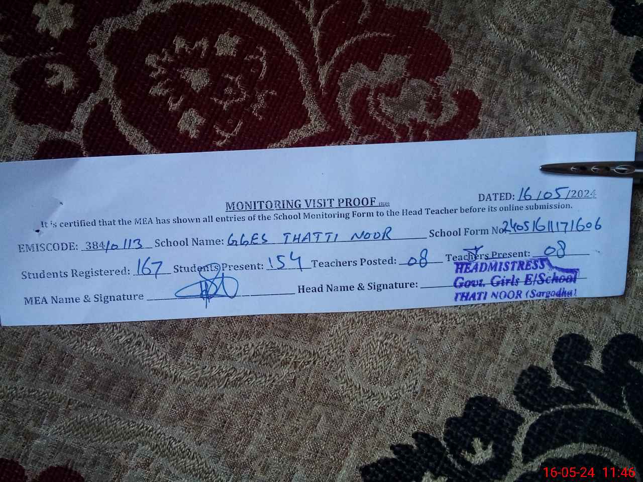 | EMIS Code: 38410113 | Name of School: GGES THATTI NOOR | |||