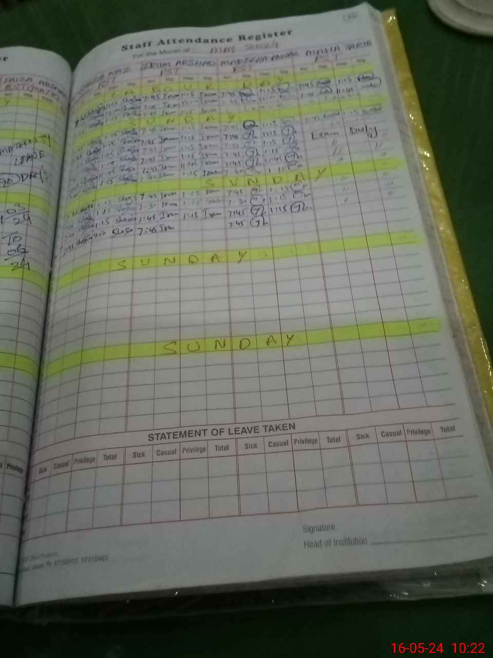 | 35**** | Qa**** Sh**** | Regular | 3 | 13 | 0 | 0 | 0 | 0 | 0 | 0 | 3 | Exam Duty | |