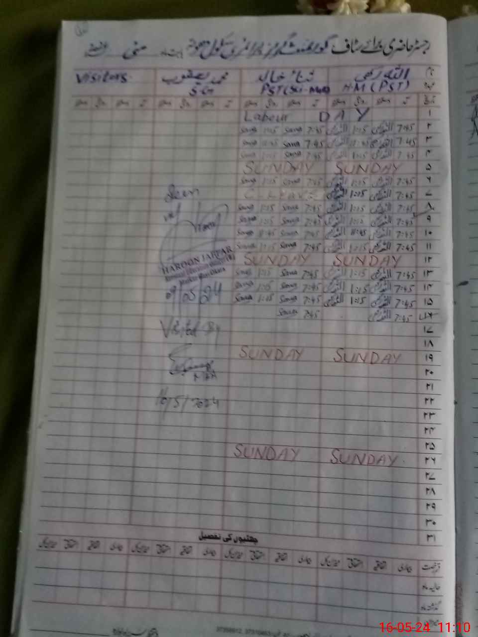 | CNIC | Full Name | Designation | R/C | Absence During Last Calender Month |