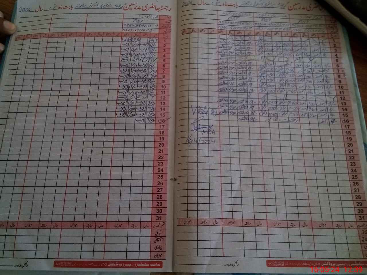 | CNIC | Full Name | Designation | R/C | Absence During Last Calender Month |