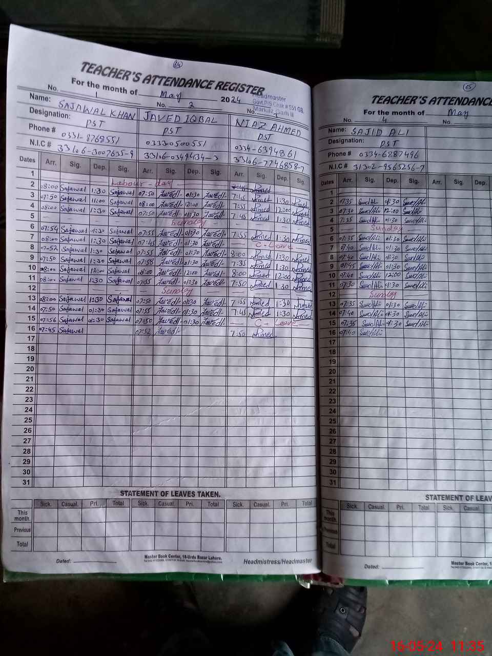 | Name: SA**** KH**** Designation: (School Headmaster's/Headmistress's) PST Phone/Cell Number: 03**** |