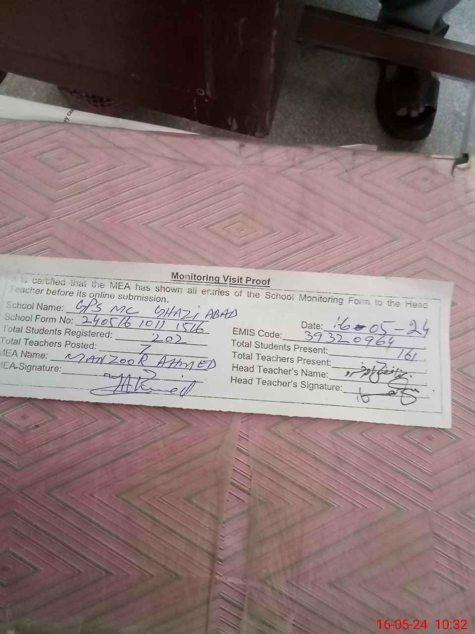 | EMIS Code: 39320964 | Name of School: GPS MC GHAZI ABAD | |||