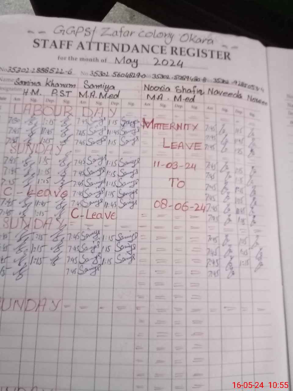 | 35**** | No**** Sh**** | PST | Regular | 0 | 0 | 0 | 0 | 0 | 0 | 0 | 0 | 0 | Maternity |