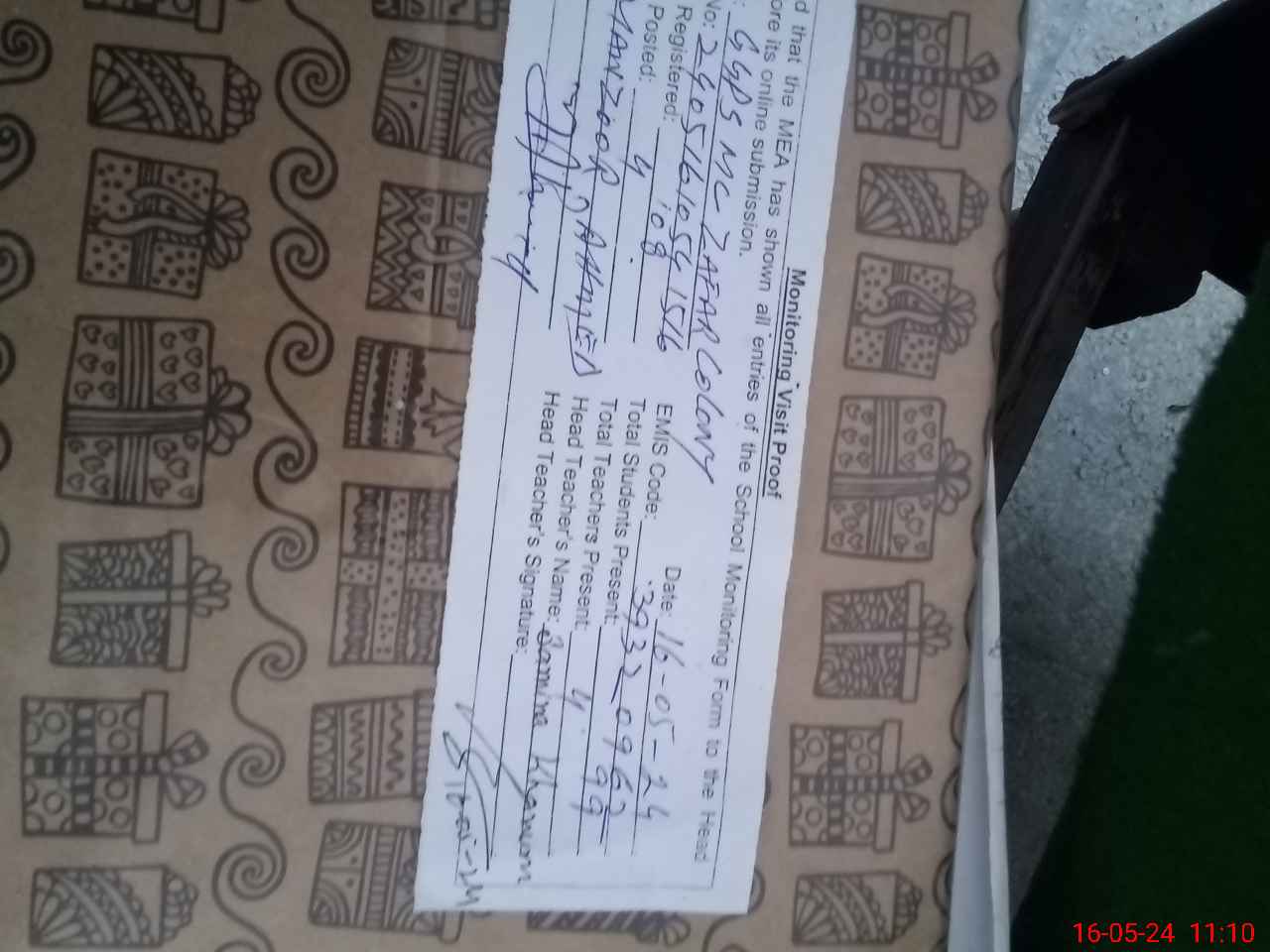 | Attendance Register | Head Teacher | MEA with School | Visit Proof |