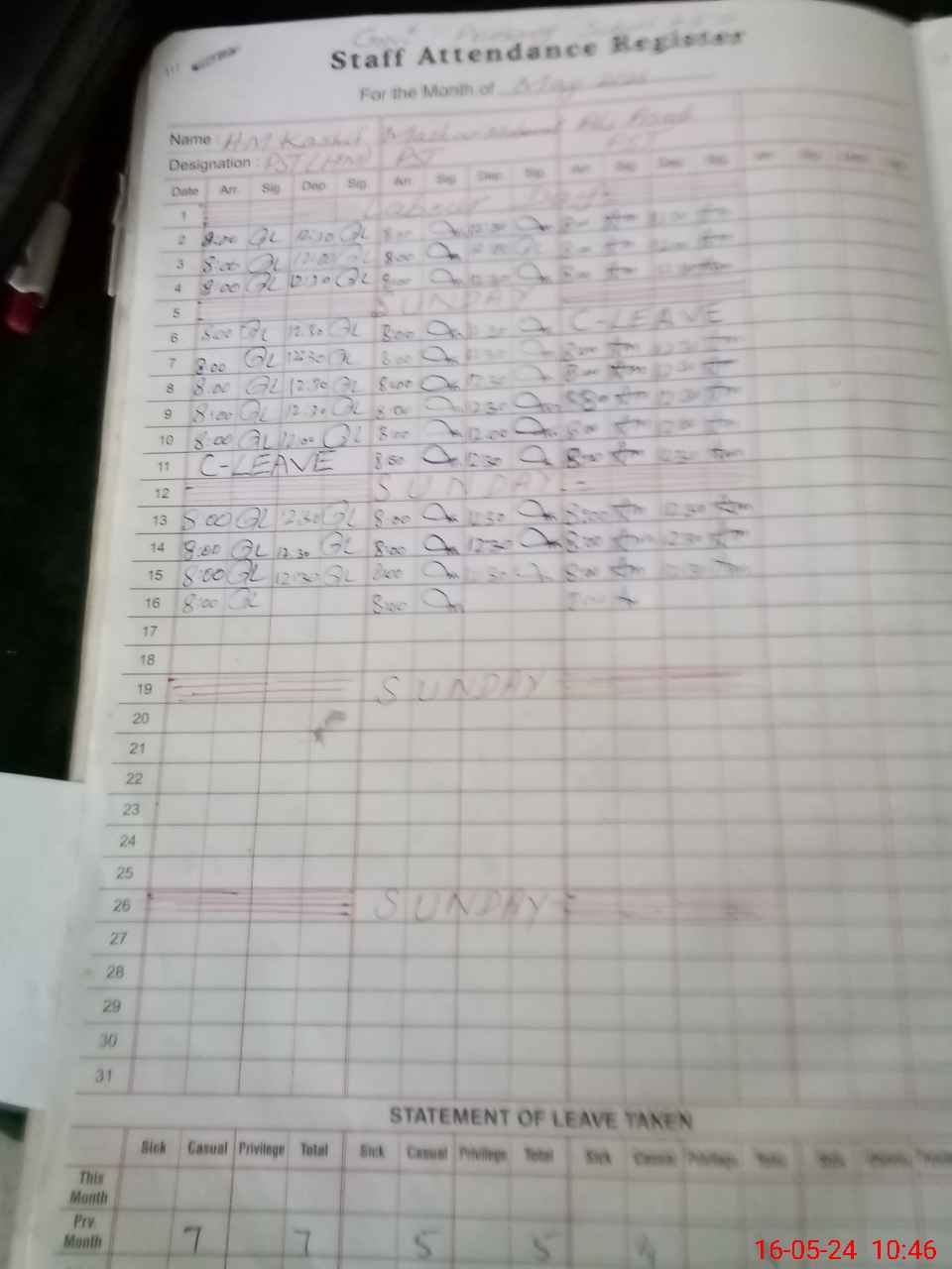 | Leave | Duty | Absent | Maternity | Medical | Ex- Pak |